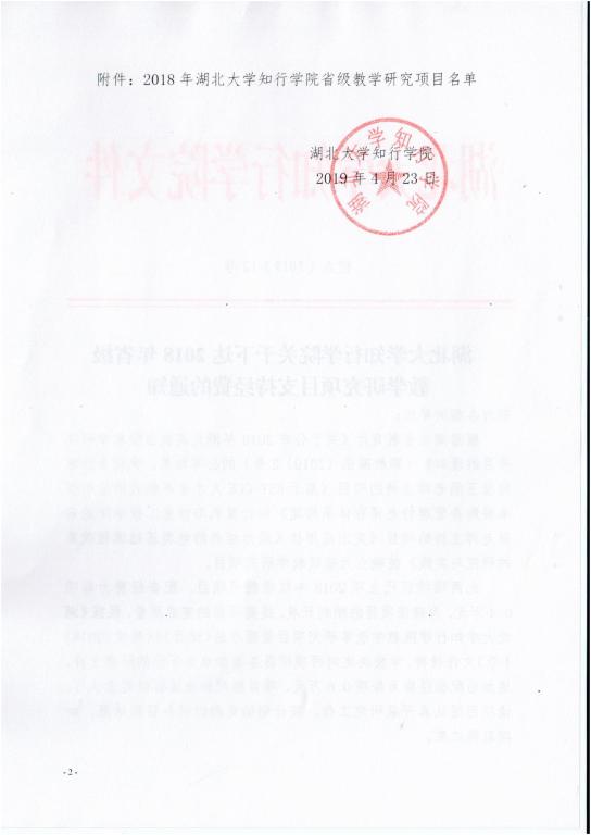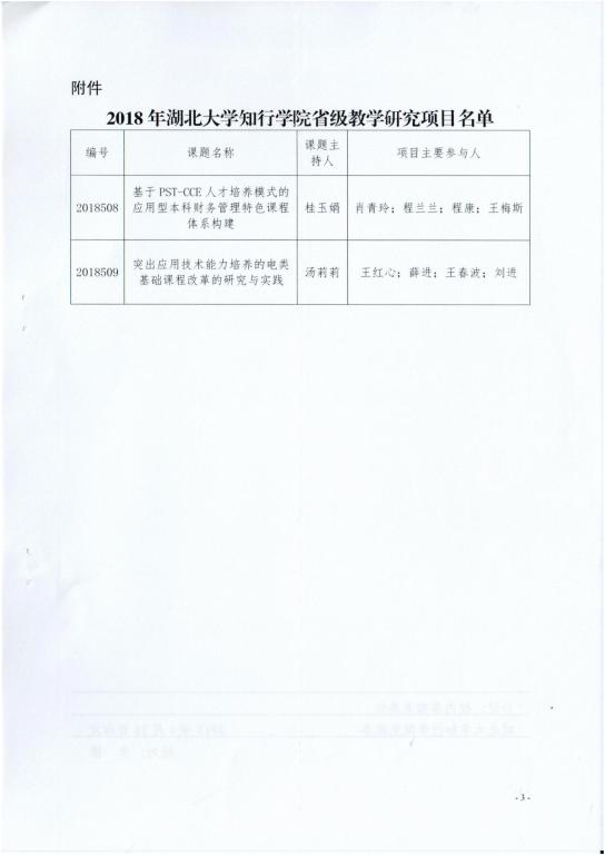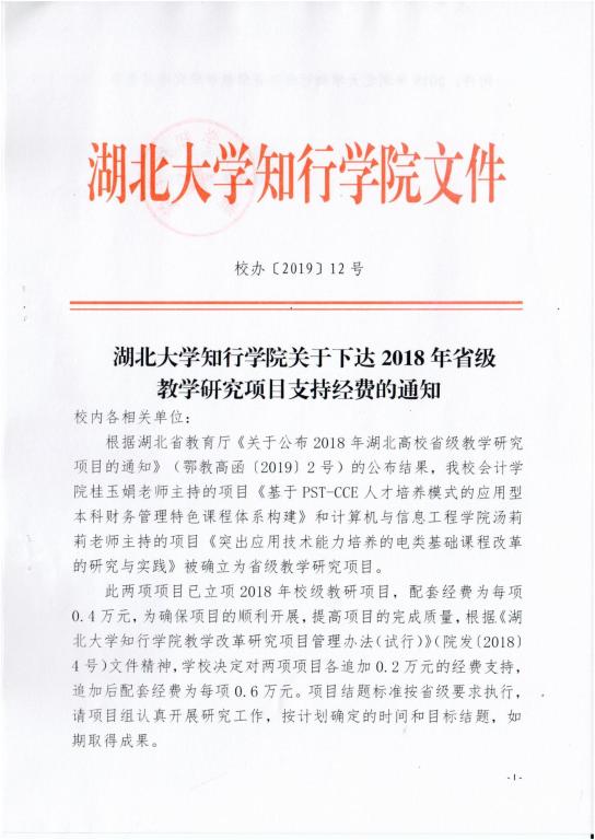 湖北大学知行学院关于下达2018年省级教学研究项目支持经费的通知